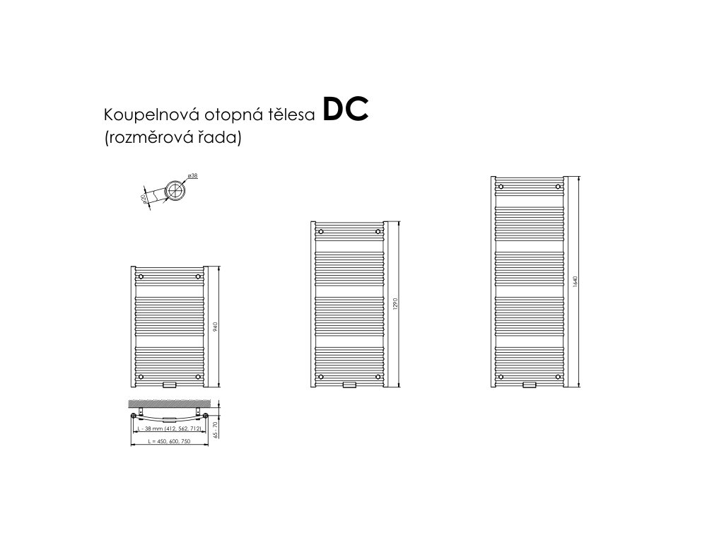 Obloukový radiátor do koupelny DC je správná volba pro majitele moderní koupelny. Je dodáván se středovým připojením s roztečí 50 mm a je tak zvláště vhodný pro kombinované vytápění. Radiátor DC je možné připojit po stranách i na střed. Je vyroben z příčných ocelových, mírně prohnutých trubek o průměru 20 mm a dvou vertikálních ocelových trubek o průměru 38 mm. Vhodný rozměr je možné vybírat z délek 450 mm, 600 mm nebo 750 mm a výšek radiátoru 940 mm, 1290 mm nebo 1640 mm. Součástí dodávky je sada pro upevnění na stěnu a odvzdušňovací a zaslepovací zátka.