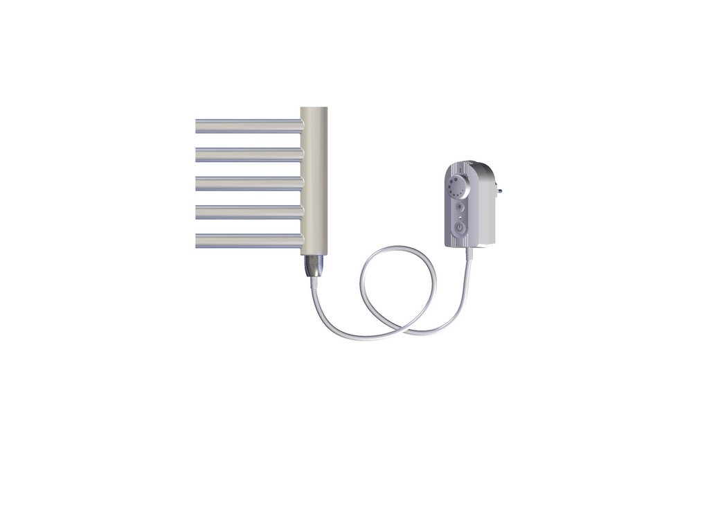 DC.ER s regulátorem, do zásuvkyElektrický koupelnový radiátor – sušák DC.ER se zapojuje do zásuvky. Je vybaven elektronickým regulátorem prostorové teploty se síťovým spínačem a síťovou vidlicí Unischuko 230V~. Elektronický regulátor s 2 hodinovým programem sušení umožňuje regulovat prostorovou teplotu v rozsahu 5°C až 30°C. Elektrický koupelnový radiátor s termostatem DC.ER je v nabídce s rovným nebo krouceným přívodním kabelem.