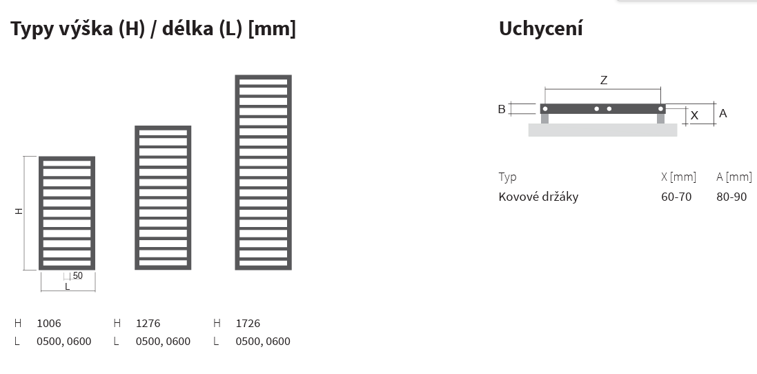 | ? Produkt: | Otopné těleso, Radiátor, Topný žebřík |