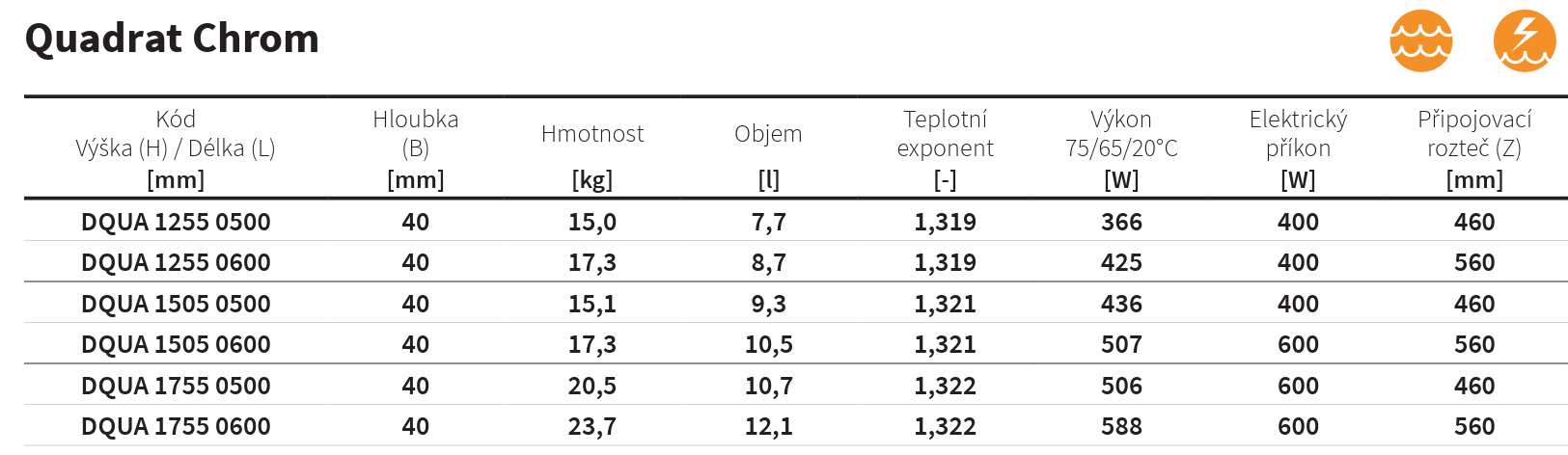 Isan Quadrat Chrom 1255/500, 366 W, koupelnový radiátor, DQUA12550500SK