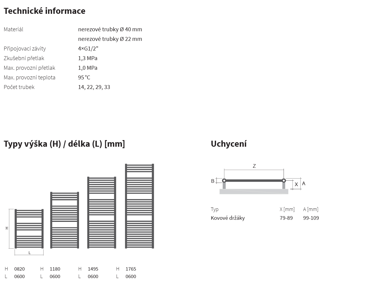 | ? Produkt: | Otopné těleso, Radiátor, Topný žebřík |