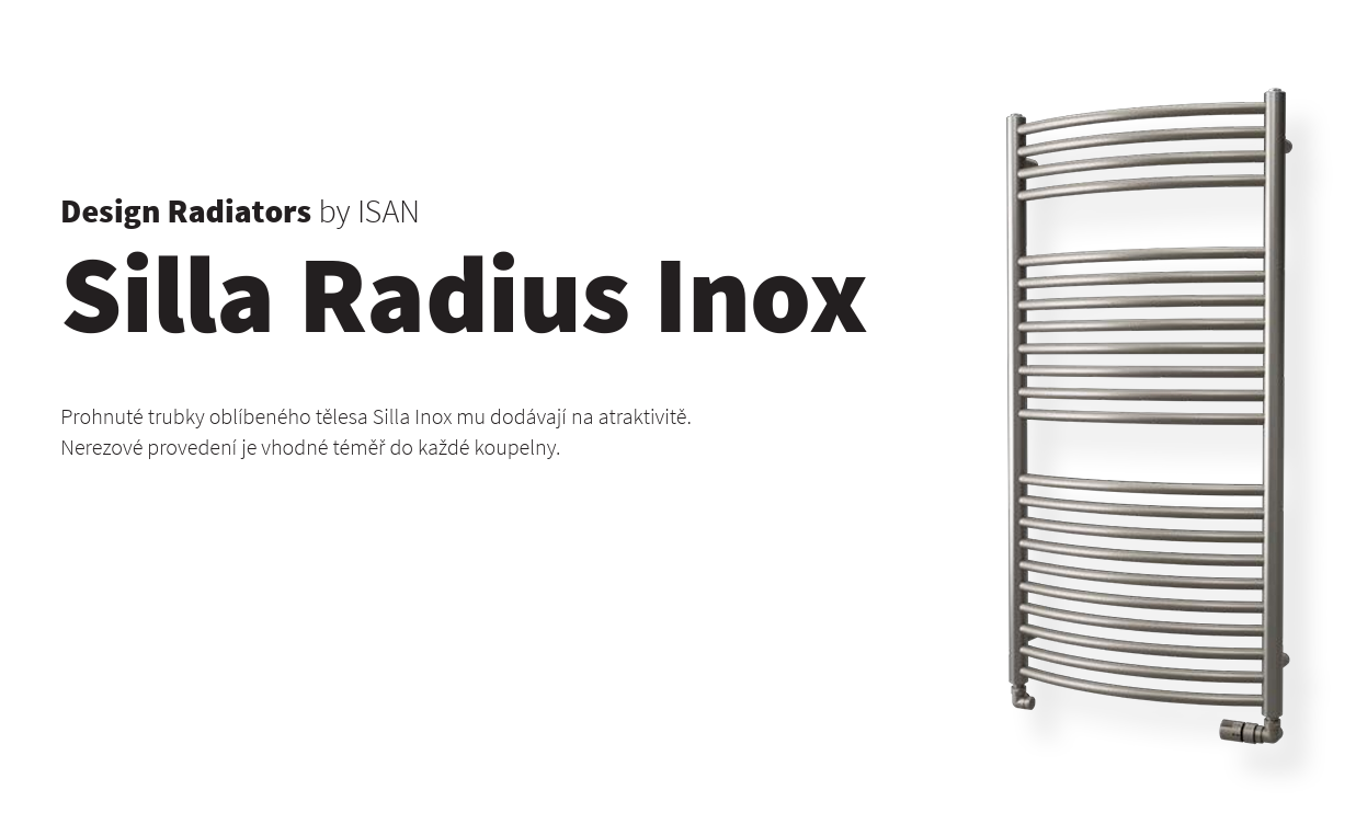 Prohnuté trubky oblíbeného tělesa Silla Inox mu dodávají na atraktivitě. Nerezové provedení je vhodné téměř do každé koupelny.