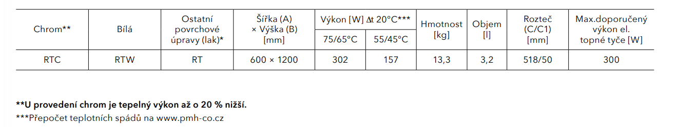 PMH Retro 600 x 1200 mm RT koupelnový radiátor
