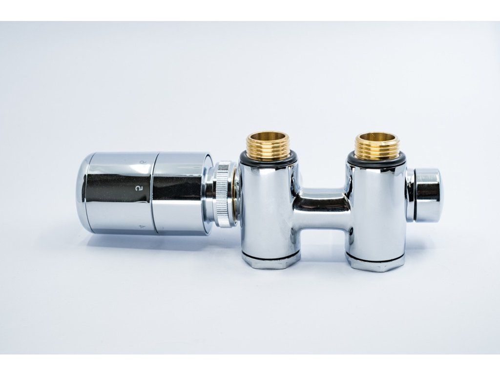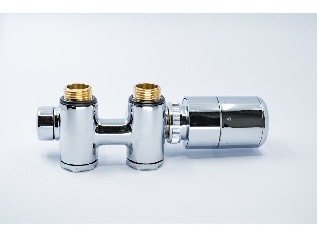 Ventil s termostatickou hlavicí: Integrovaný termostat udržuje nastavenou teplotu okolí. Termostatická hlavice musí být v místě přívodu teplé vody.