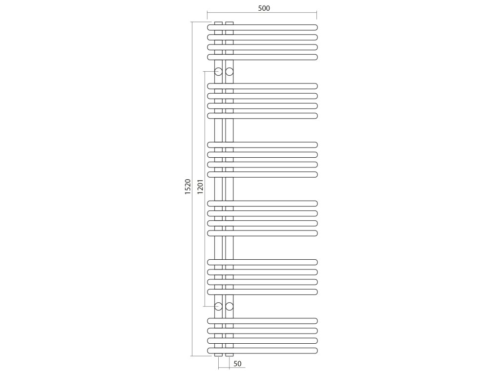 Klasické trubky s kruhovým profilem sestavené v designový radiátor, který lze díky středovému připojení s roztečí 50 mm kombinovat s designovými ventily z naší nabídky.