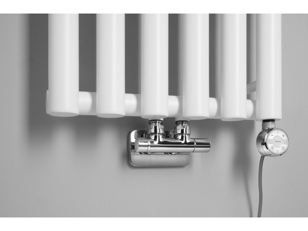 Ventil s termostatickou hlavicí: Integrovaný termostat udržuje nastavenou teplotu okolí. Termostatická hlavice musí být v místě přívodu teplé vody (mimo MONO ONE).