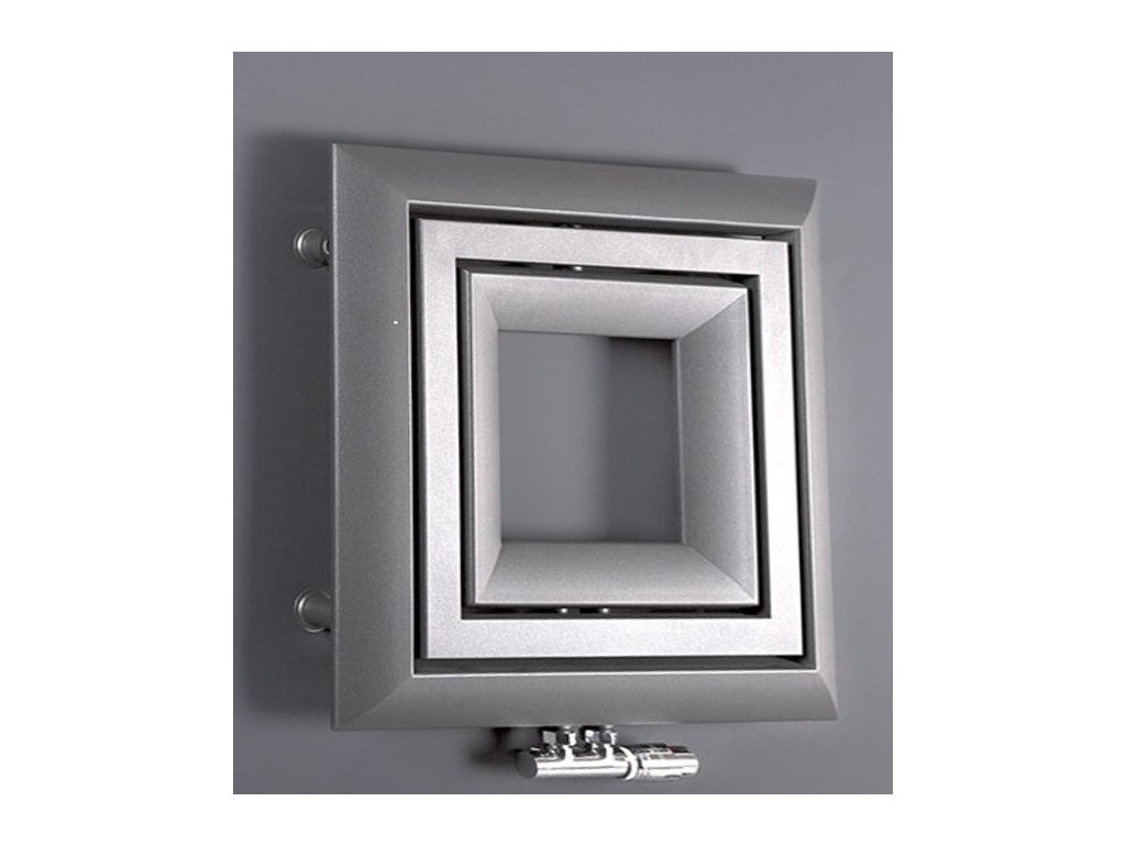 Dekorativní radiátor v moderním hranatém designu se středovým připojením. Nelze instalovat topnou tyč.