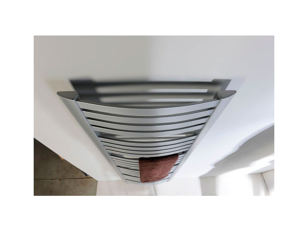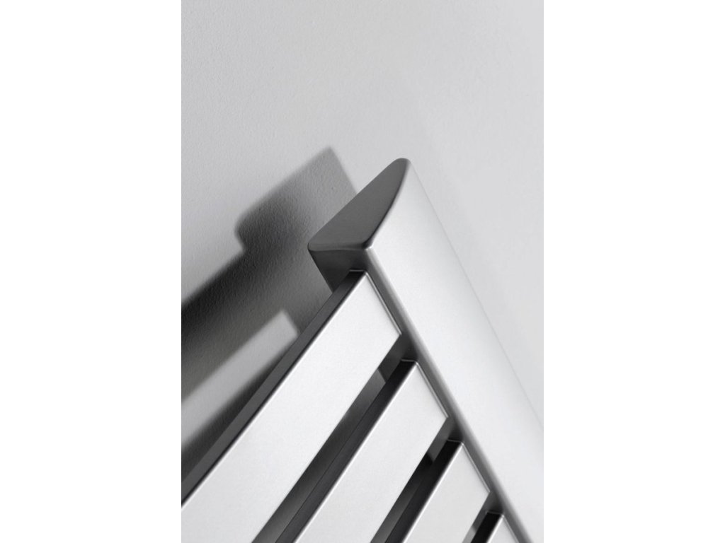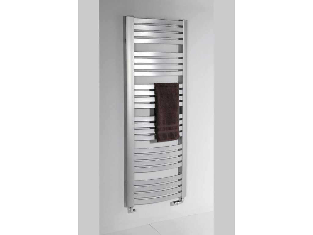 Dekorativní koupelnový radiátor s jemně prohnutými plochými trubkami s možností kombinace ústředního a elektrického vytápění.