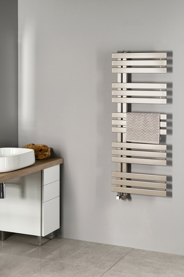 Nevšední provedení s hranatými profily umocňuje technickou eleganci radiátoru Sapho Silvana. Radiátor lze zavěsit oboustranně a můžete si tak zvolit levou nebo pravou variantu instalace.