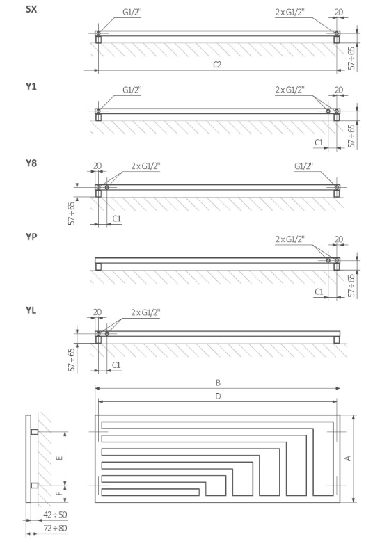 Zde uvádíme horizontální radiátor (H) dostupný v teplovodní, kombinované a elektrické variantě.