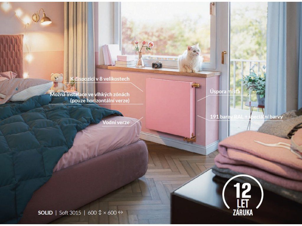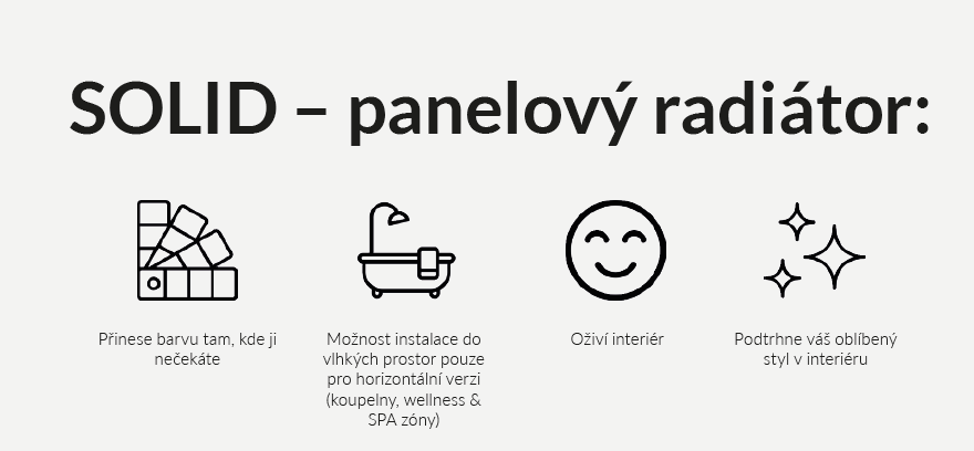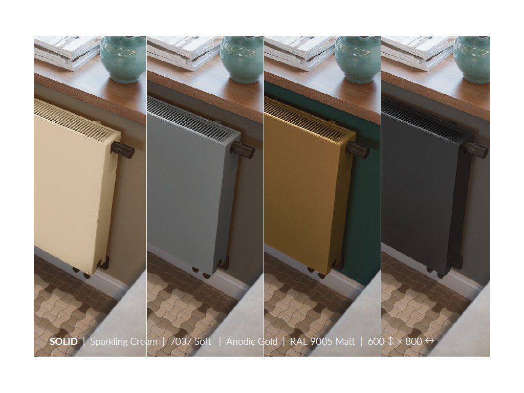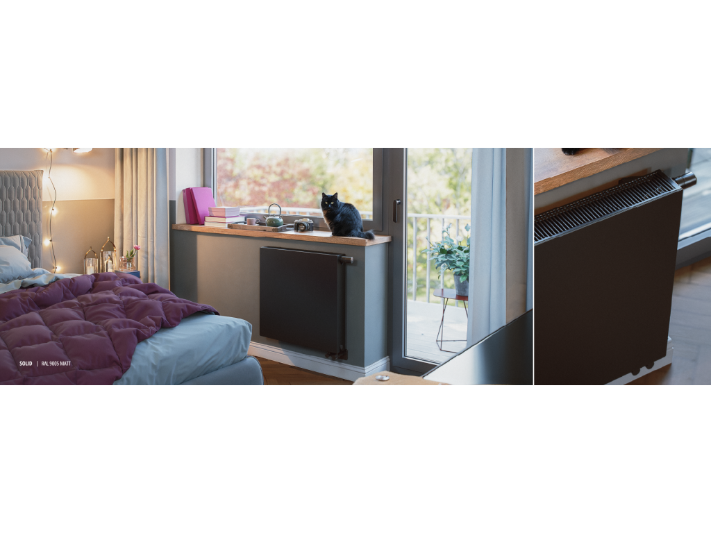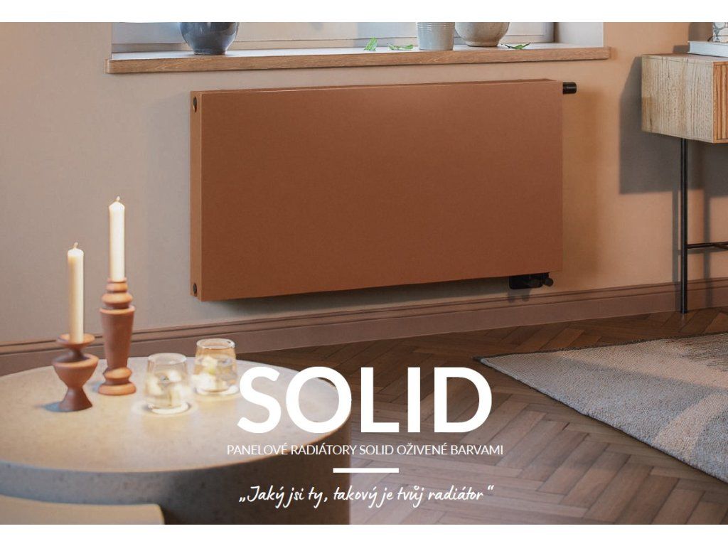 Rozbij nudu v interiéru! Radiátor nemusí být bílý! Radiátor SOLID je horizontální deskový radiátor s dekorativní, plochou čelní stranou – jinými slovy elegantní, štíhlý a připravený zapadnout do jakéhokoli interiéru.
