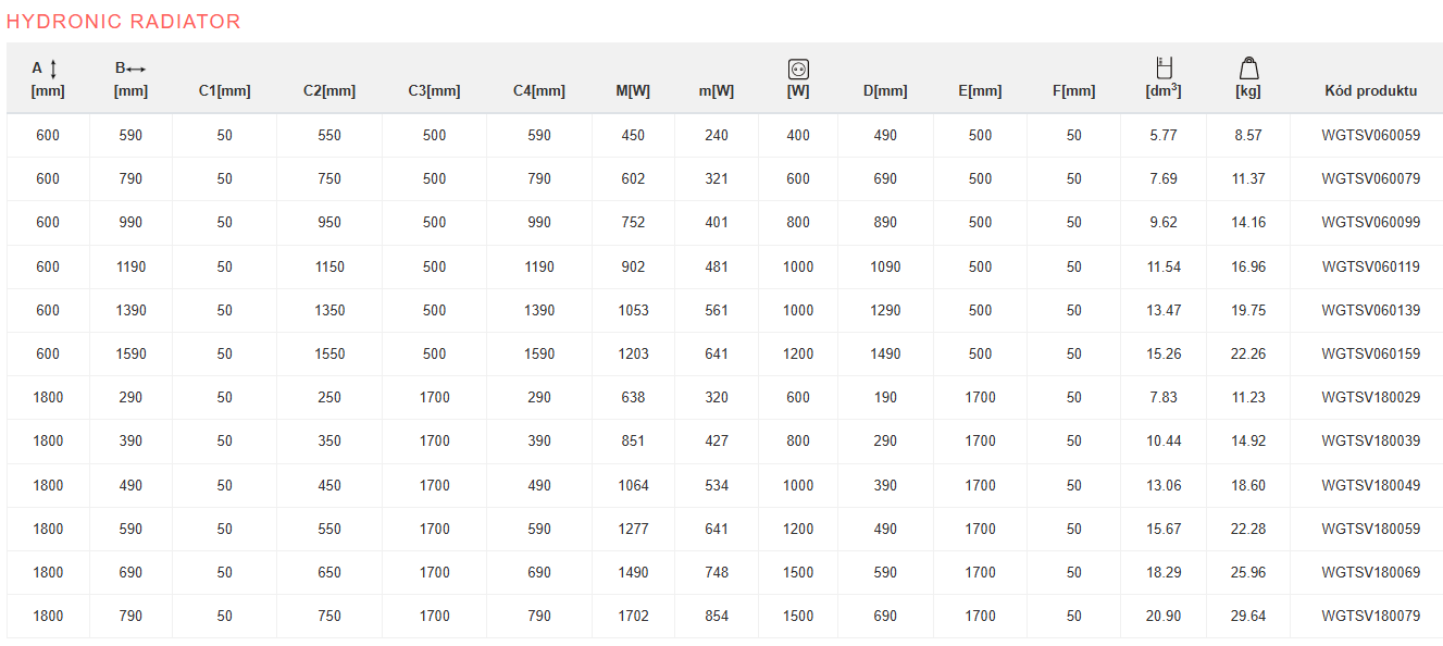 Dostupné varianty jsou teplovodní a kombinovaná.