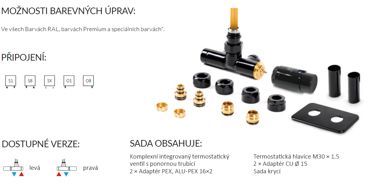 | ? Výbava: | Středové 50 mm, Termostat, hlavice vlevo, Termostat, hlavice vpravo |