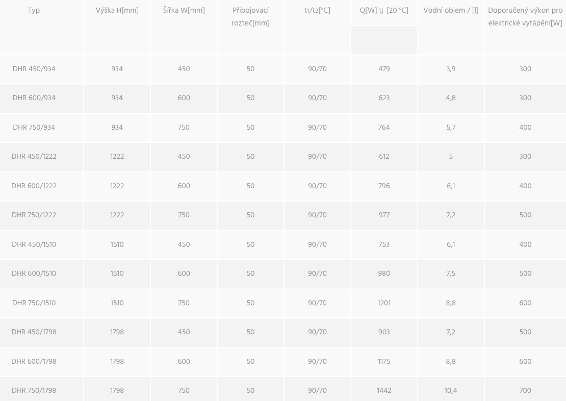Moderní typ radiátoru DHR nabízí příjemnou tepelnou konformitu a zároveň je vyvinut s ohledem na pokročilé designové požadavky zákazníků. Pohodlně na něj můžete zavěsit ručníky i jiné textilie. Nabízen je v klasickém levém a pravém provedení ve velikostech uvedených v nákresech a tabulce. Vyberte si a nechte se inspirovat jeho povedeným vzhledem a příjemným sálavým teplem.