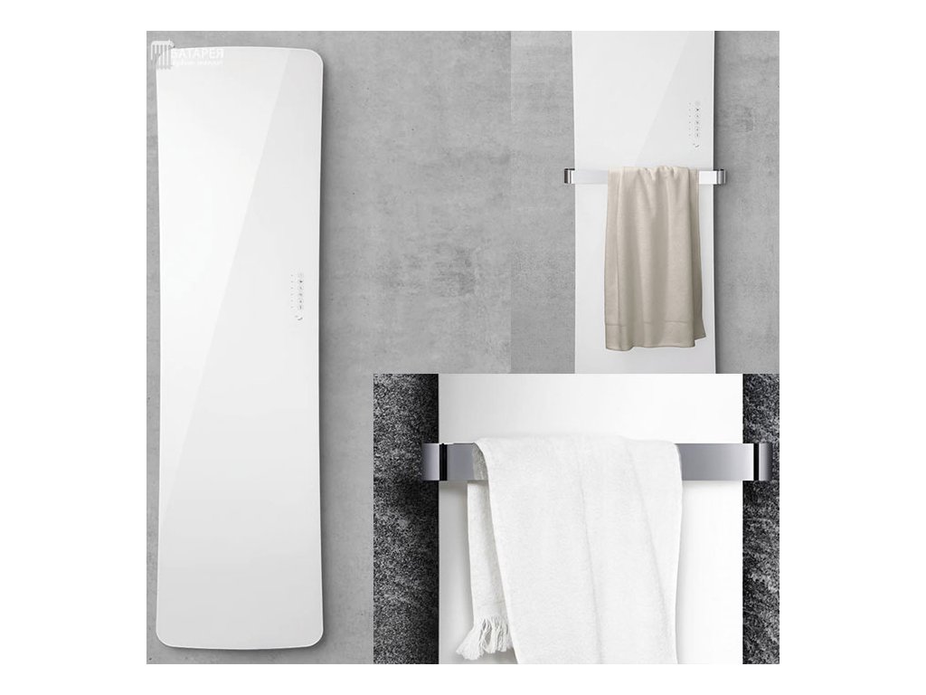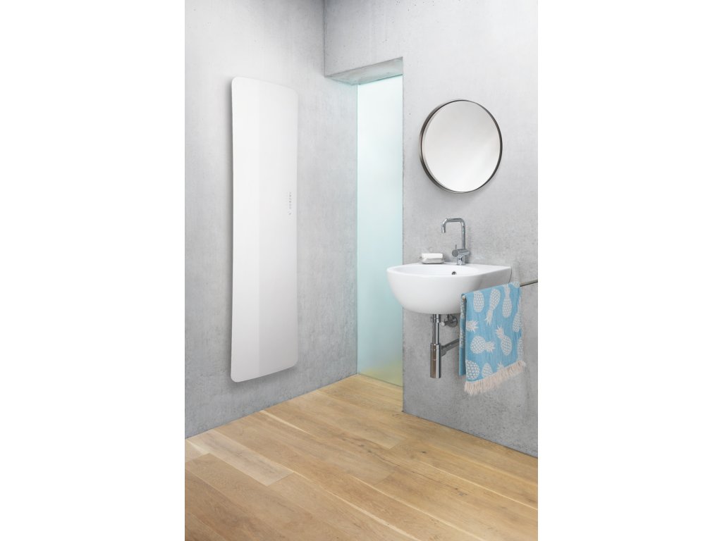 Ať již v temné černé, sněhově bílé nebo jako zrcadlo. Zehnder Folio Glass ze Studio Zehnder Collection se díky své elegantní skleněné úpravě harmonicky začlení do jakéhokoliv interiéru. Mimořádně plochý povrch o tloušťce pouhých 8 mm, uzavřený profil a jemně zaoblené tvary - Zehnder Folio Glass zaujme svou neobvyklou lehkostí. Design skleněného povrchu jenž jako by se vznášel v místnosti, je výsledkem jedinečné inovativní technologie. Skleněná plocha z vrstveného bezpečnostního skla 2 x 4 mm, s uvnitř vloženou elektrickou topnou fólií. Jeden nebo dva držáky na ručník, které se na přání objednávájí zvlášť. Pro dodatečnou instalaci v pevně dané poloze. Ovládání na ovládacím panelu (dotykový panel) nebo dálkovým ovládáním (model 4). Stupeň krytí IP44, napětí elektrické sítě 230 V. Přívodní kabel 1,2 m se zástrčkou. Kabel se zástrčkou v bílé barvě, vývod kabelu směrem dolů. Přední plocha dostupná v černé lesklé, bílé lesklé nebo jako zrcadlo. Součástí dodávky jsou nástěnné konzole v černé barvě.