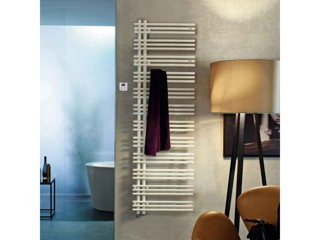 Elektrická topná tyč RACY-C je vestavěna ve spodní části levé sběrné trubky. Stupeň ochrany IP44 (stříkající voda), vhodná pro připojení do sítě 230 V. Přívodní kabel (1,2 m) s Euro zástrčkou. Dekorativní radiátor naplněný kapalinou pro přenos tepla.