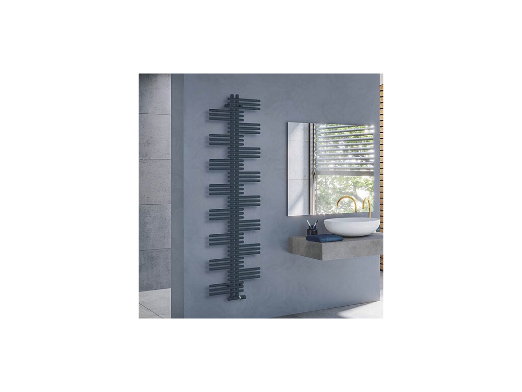 Originál ve tvaru „palmy“. Ze stran otevřené symetrické uspořádání kulatých trubek je ideální k zavěšení ručníků, županů a jiných částí oděvu. Radiátor se vyznačuje malou stavební hloubkou a jemným vzhledem.