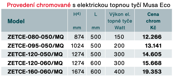 Topná tyč Musa Eco je vestavěná ve výrobě, nelze ji objednat samostatně.